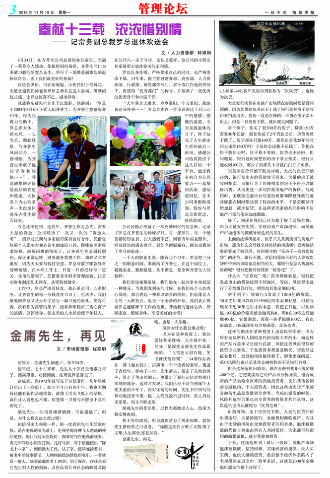 奉獻十三載 濃濃惜別情 ——記常務副總裁羅總退休歡送會